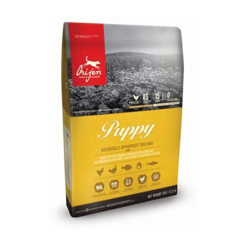 Η ORIJEN PUPPY ξεχειλίζει από φυσική πρωτεΐνη και λίπη που προέρχονται από αυθεντικά φρέσκα κρέατα, όπως ελευθέρας βοσκής κοτόπουλο και γαλοπούλα, ολόκληρα ψάρια αλιευμένα στη φύση και ολόκληρα αυγά από φωλιές. Όλα σε πλούσιες θρεπτικά WHOLEPREY™ αναλογίες. Η ORIJEN PUPPY ξεχειλίζει από φυσική πρωτεΐνη και λίπη που προέρχονται από αυθεντικά φρέσκα κρέατα, όπως ελευθέρας βοσκής κοτόπουλο και γαλοπούλα, ολόκληρα ψάρια αλιευμένα στη φύση και ολόκληρα αυγά από φωλιές. Όλα μας παραδίδονται σε πλούσιες θρεπτικά WholePrey™ αναλογίες. Με 38% πλούσια θρεπτικά πρωτεΐνη και χαμηλού γλυκαιμικού δείκτη υδατάνθρακες που περιορίζονται στο 17%, η ORIJEN PUPPY θρέφει τα κουτάβια σύμφωνα με τις βιολογικές τους ανάγκες. Παρασκευασμένη αποκλειστικά στις βραβευμένες κουζίνες της Champion Petfoods στην Αλμπέρτα του Καναδά, η ORIJEN PUPPY κρατά το κουτάβι σας υγιές, χαρούμενο και δυνατό.