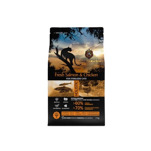 AMBROSIA GF CAT ADULT 5KG FRESH SALMON & CHICKEN STERILISED