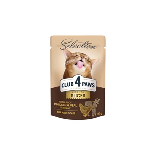 CLUB 4 PAWS SLICES adult με κοτόπουλο μοσχάρι σε σάλτσα 80gr