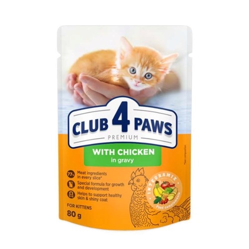 CLUB 4 PAWS Υγρή kitten με κοτόπουλο σε σάλτσα 80gr