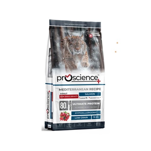 Ξηρά Τροφή Γάτας Proscience Sensitive Beauty (Hair Skin & Beauty) Σολομός. Η τροφή για γάτες Proscience Salmon Adult προσφέρει πλήρη και ισορροπημένη διατροφή για την ενήλικη γάτα σας. Με τη μεσογειακή της συνταγή, 80% ζωική πρωτεΐνη, υποαλλεργική και χαμηλής περιεκτικότητας σε δημητριακά σύνθεση που υποστηρίζει υγιές δέρμα και τρίχωμα . Υγεία με τη δύναμη της Μεσογείου: Αυτή η φόρμουλα περιέχει κράνμπερι για την υποστήριξη της υγείας του ουροποιητικού συστήματος, βατόμουρα για την ενίσχυση του ανοσοποιητικού συστήματος, σμέουρα για την υποβοήθηση της πέψης και ρόδια, μια ισχυρή πηγή αντιοξειδωτικών για το ανοσοποιητικό σύστημα.
