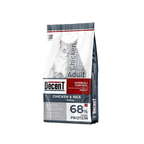 ΑΡΧΙΚΗ ΓάταΓια το φαγητόΤροφήΞηρά τροφήDECENT Adult Hairball 15Kg